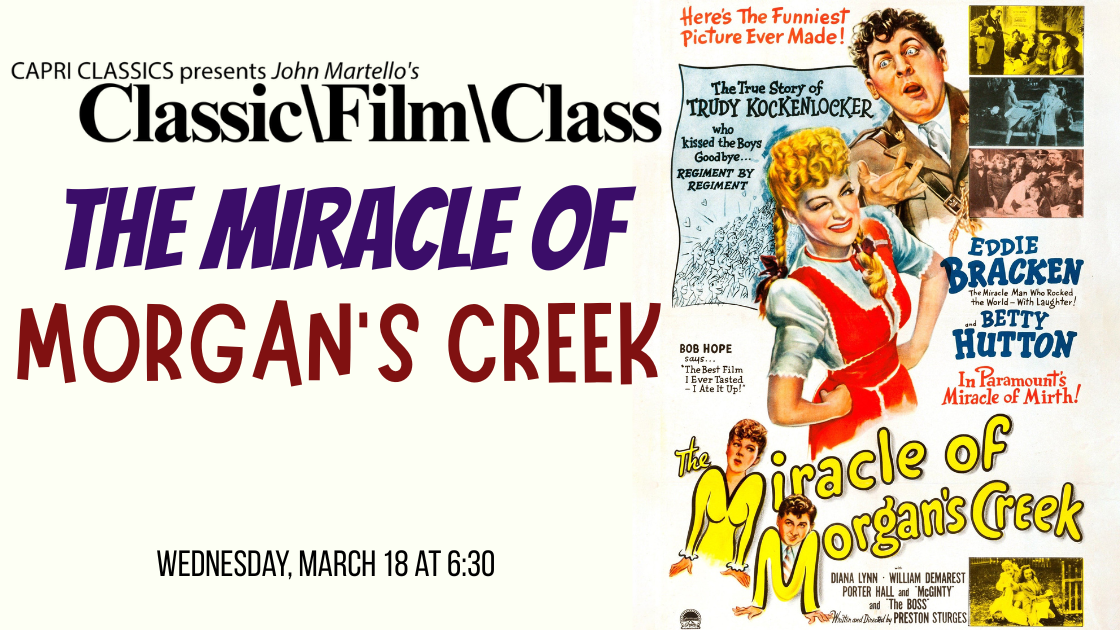 THE MIRACLE OF MORGAN’S CREEK Wednesday, March 18 at 6:30